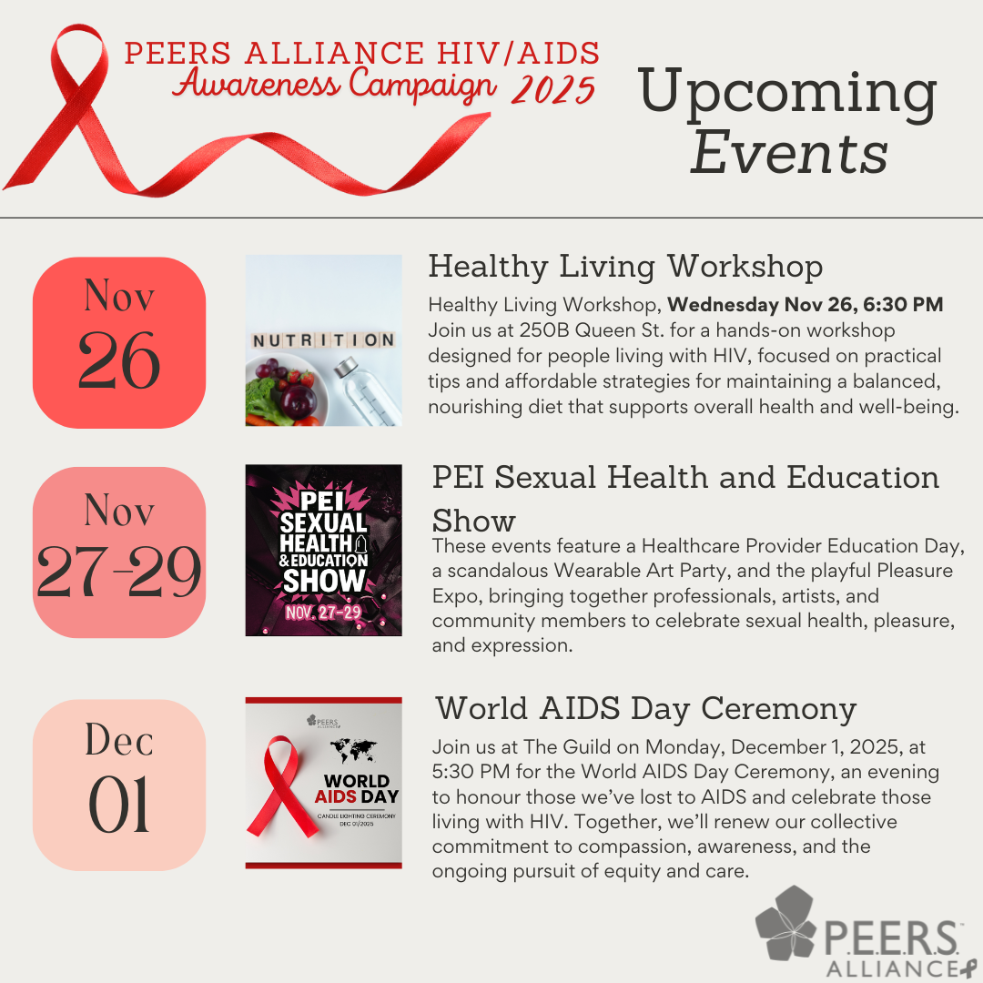 This November, we’re shining a light on HIV awareness, resilience, and community care across PEI. From art and storytelling to film, workshops, and celebration — join us as we honour those impacted by HIV and work toward a future rooted in equity and compassion.